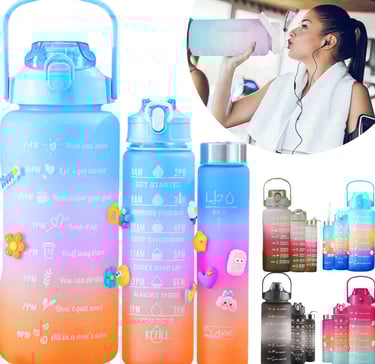 Kit 3 Garrafas de Água para Academia – 2000ml, 900ml e 300ml com Adesivo