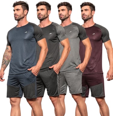 Renove seu visual esportivo com praticidade e conforto! Garanta já seu kit com 4 conjuntos dry fit masculinos, com camisas e shorts ideais para academia e treinos diários. Aproveite essa oferta especial e eleve seu desempenho!
