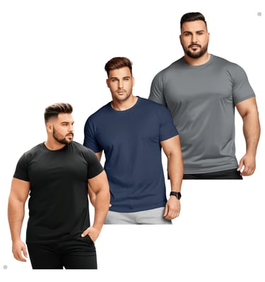 Garanta já seu kit com 3 camisetas dry fit de tecido respirável e sinta a diferença no conforto durante os treinos. Ideal para quem busca leveza, praticidade e estilo na academia ou no dia a dia. Aproveite essa oferta e renove seu visual fitness agora mesmo!