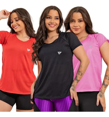 Eleve seus treinos com mais conforto e estilo! Garanta já seu kit com 3 camisetas dry fit femininas, perfeitas para academia e atividades físicas. Aproveite essa oportunidade e renove seu guarda-roupa fitness!